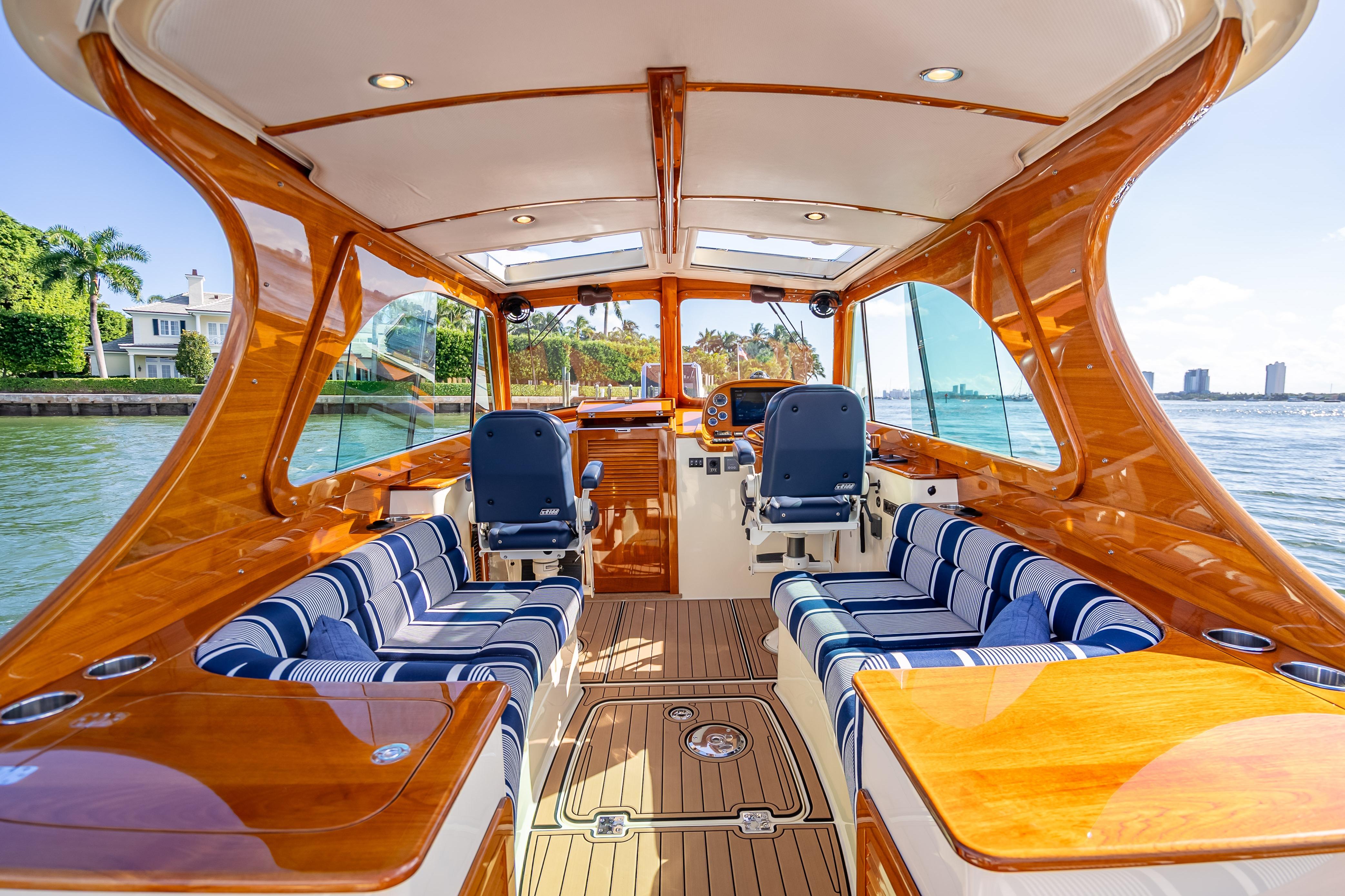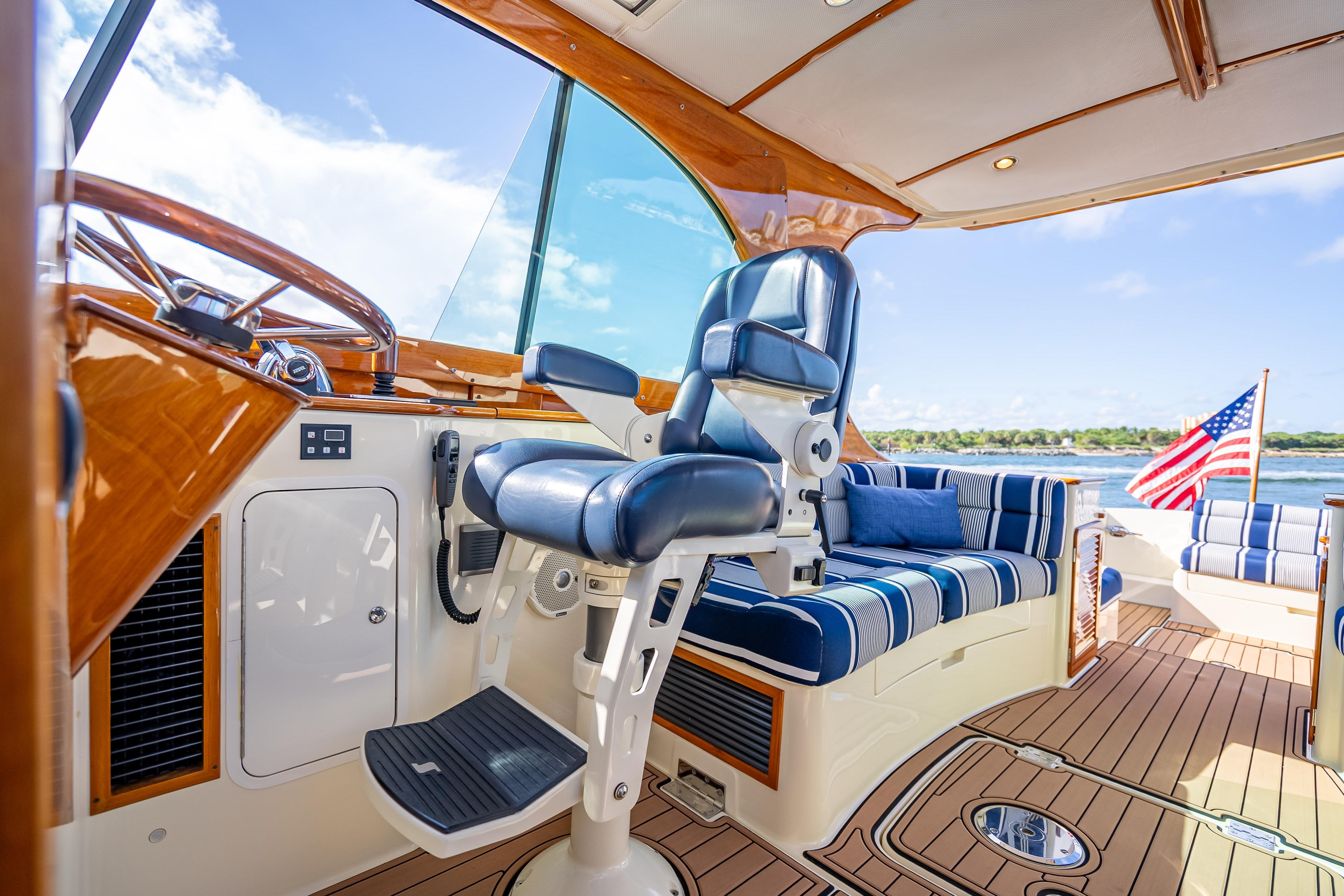 - Hinckley’s 2nd generation integrated “JetStick II” control system with Hinckley’s “H-Lock” automatic positioning and heading lock feature; fingertip control of vessel steering, motion (fore, aft and side) and position.