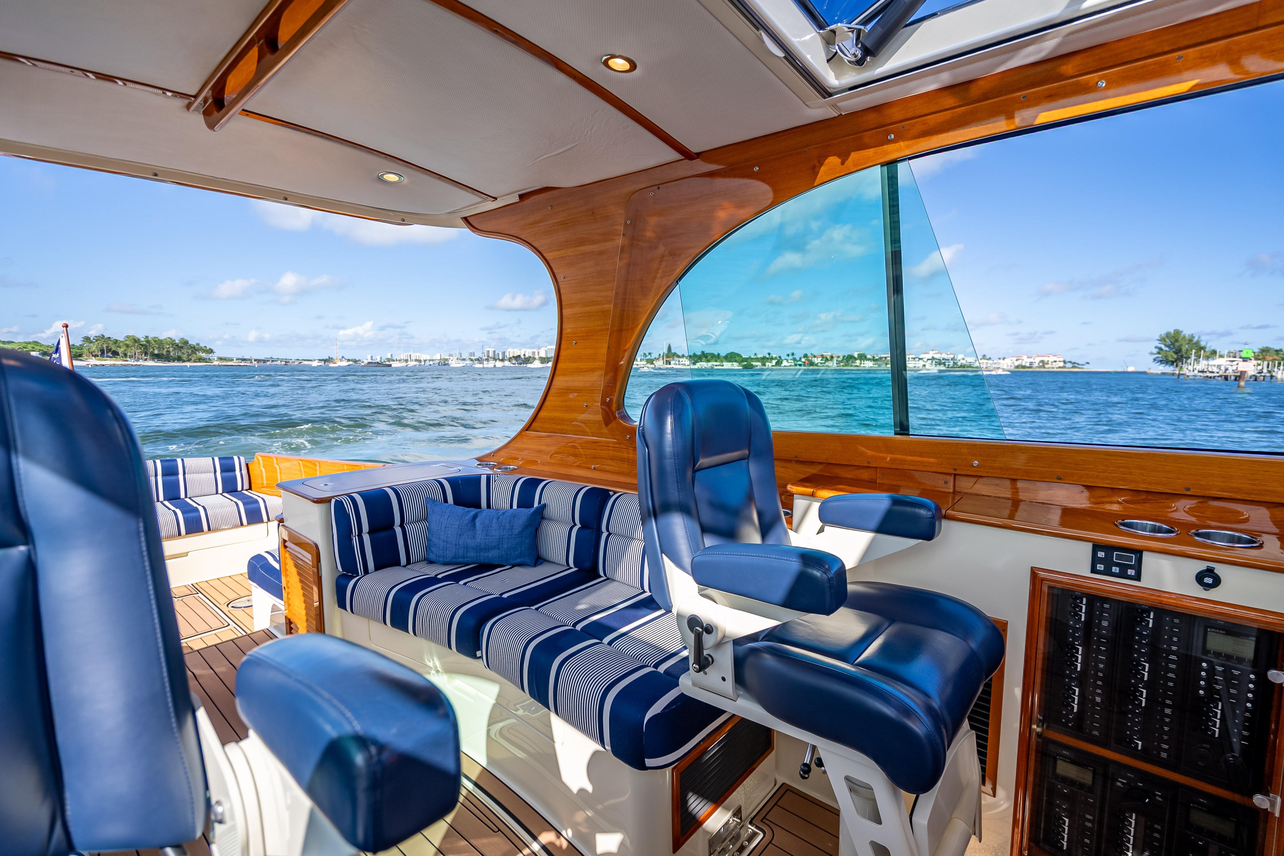 - The Pilothouse is fully air conditioned and features Luxor leather Dune cushions and helm chairs