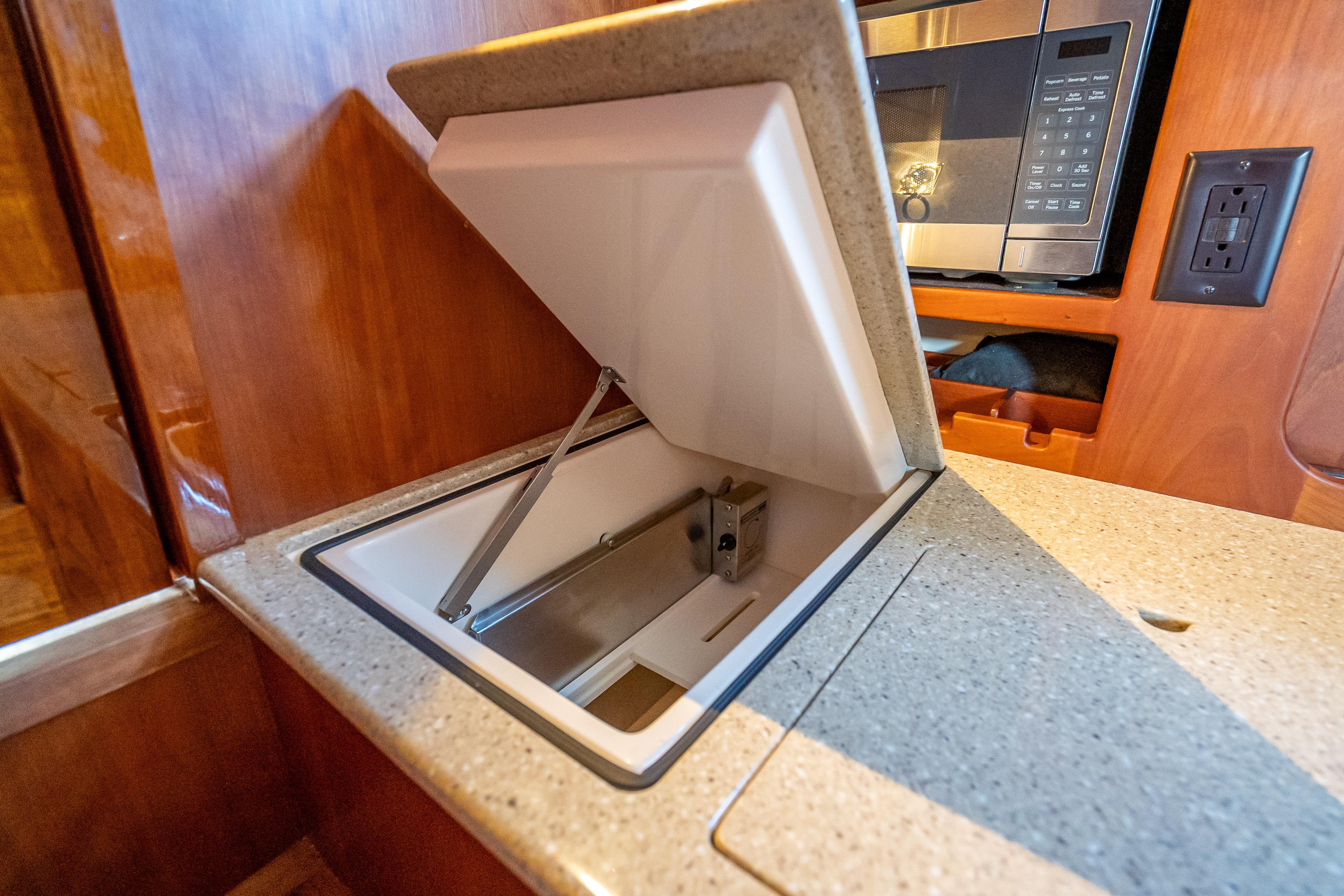 - Optional refrigerator installed in starboard amenity between pilot house and cockpit